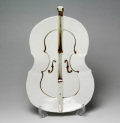 生地でチェロの形を表現する一方で、鉄絵で彩色した上に艶消しの釉薬で仕上げました。