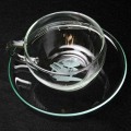 ハーブティーにも似合うガラス製カップ&ソーサー。カップは耐熱ガラス、ソーサーは普通ガラスです。