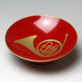 名匠の筆による漆絵で、フレンチホルンモチーフを描いた本物の朱盃です。