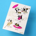 四季を楽しむオーケストラの面々より、夏の海を楽しむ弦楽器奏者たちの絵葉書です。